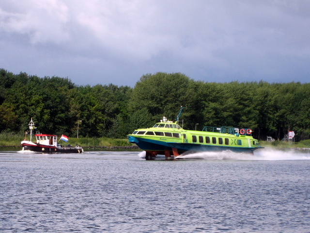 .1045 V. large barge approaching astern, and much larger cruise liner approaching ahead. Some tricky cross flows in narrowed channel. Passing Zijkkanaal “A”. AOK. Squall arrives just in the middle of fender-adjusting.